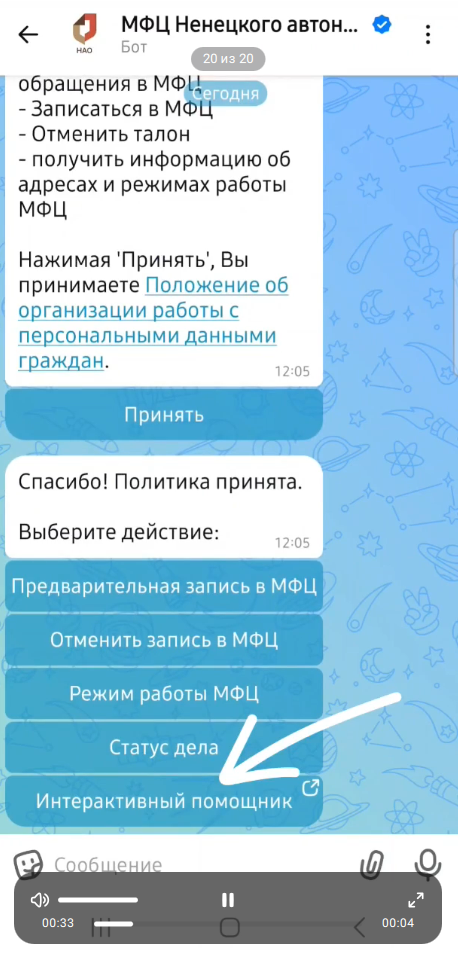 Интерактивный помощник в чат-боте МФЦ в MAX!